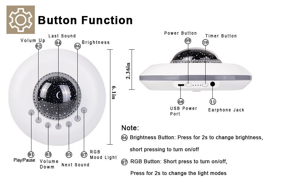 LED light:Warm yellow light,Colorful breathing light