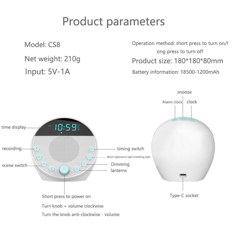 LED Light: Breathing light, Warm yellow light, Colorful light, three levels of brightness